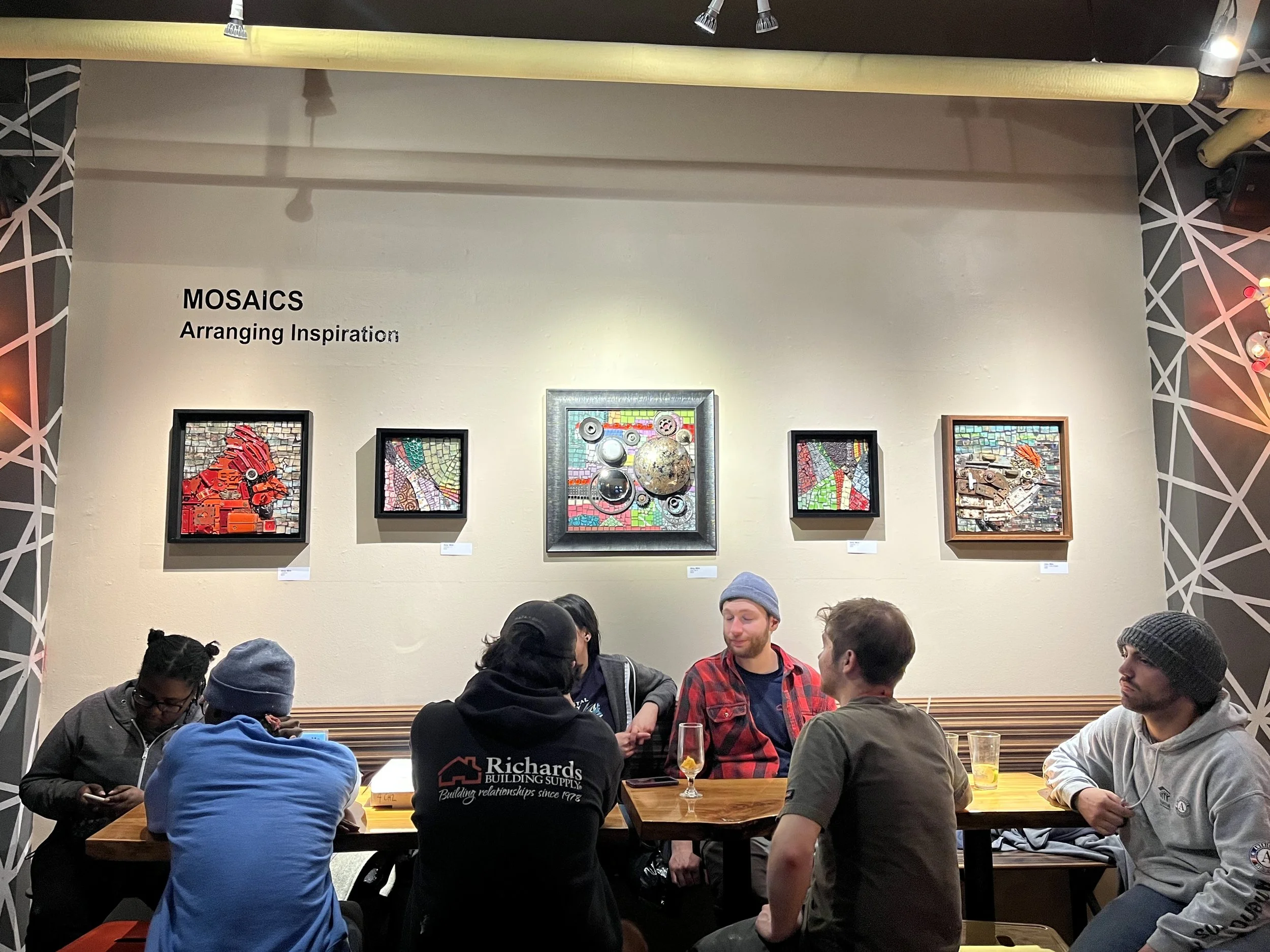 I'm thrilled to announce my return for another collaborative mosaic art show at Art*Bar. This time, I've prepared a curated selection of NEW works specifically for this event. If you're in the area, I highly recommend visiting to support the vibrant community of artists, musicians, and the establishment itself on East Burleigh Street in Milwaukee. I'll be attending the opening reception in person. A special shoutout to Don Krause, the owner of this beautiful establishment. Thank you for the honor.